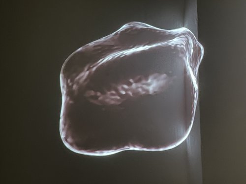 E.I The Blob is a noise making intra-active “image-organism” sensitive to sound and touch, created to explore new ways of thinking, being, acting with the Moving Image. With it I want to open up for human to non-human social relations, where situated forms of response-ability exisits, and where the digital and the organic systems are intertwined in a continual state of affecting and changing each other. E.I the Blob plays a central role in the artistic research project “Non-knowledge, Laughter and the Moving Image” where it has allowed me to rethink our relation to the moving image and see it as an intra-active vibrant body. With E.I the Blob I want to shift our attention away from the moving image and the body as forms of representations, to them as materials of psychic intensities and fields of individuation. E.I could stand for Earthificial Intelligence, or simply a mispronunciation or confusion of the acronyms A.I. or E.T.