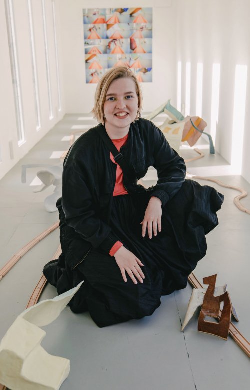 Elizaveta Ostapenko (*1999) is a visual artist based in Hamburg, Germany. She studied Fine Art at BHSAD Moscow and is currently a student at the HFBK Hamburg at the class of Pia Stadtbäumer. Elizaveta’s practice builds around questions of documentation and deconstruction of the everyday architectural environment. She explores the ways of looking at city surrounding from a less familiar point of view, focusing on the processes of preservation, transformation and movement. How can these processes be frozen and prolonged throughout time? How ordinary viewpoints can be destabilised and form new relationships with scale and perspective? Elizaveta produces works inspired by these questions experimenting with painting, printmaking and photography, as well as with sculptural techniques.