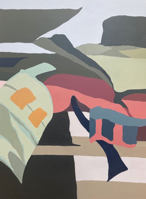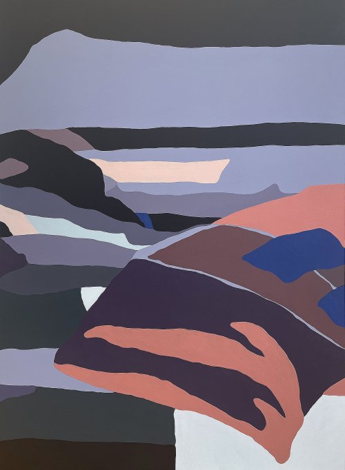 The paintings at the exhibition are part of the series “Some say we have no time to stand and stare”, and are produced with acrylic on dibond sheets. As a foundation for the painting’s motives, distorted and manipulated photographs of the artist’s sculptural works are used. The photographs are made in a slit-scan photography technique which allows the creation of a 2D panoramic projection of a 3D object on a surface.