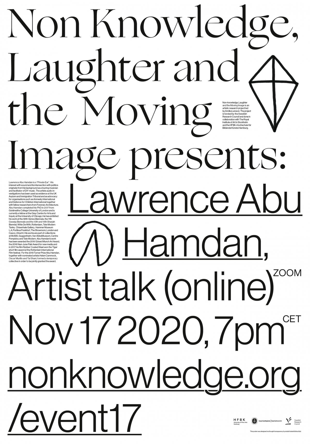 Non-knowledge, Laughter and the Moving Image is an artistic research project led by Annika Larsson. The project is funded by the Swedish Research Council and done in collaboration with The Royal Institute of Art in Stockholm and the HFBK–Hochschule für Bildende Künste Hamburg.